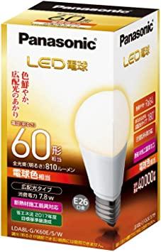 通常1-5営業日で発送:パナソニック LED電球 口金直径26mm 電球60W形相当 電球色相当(7.8W) 一般電球・広配光タイプ 密閉形器具対応 LDA8LGK60ESW