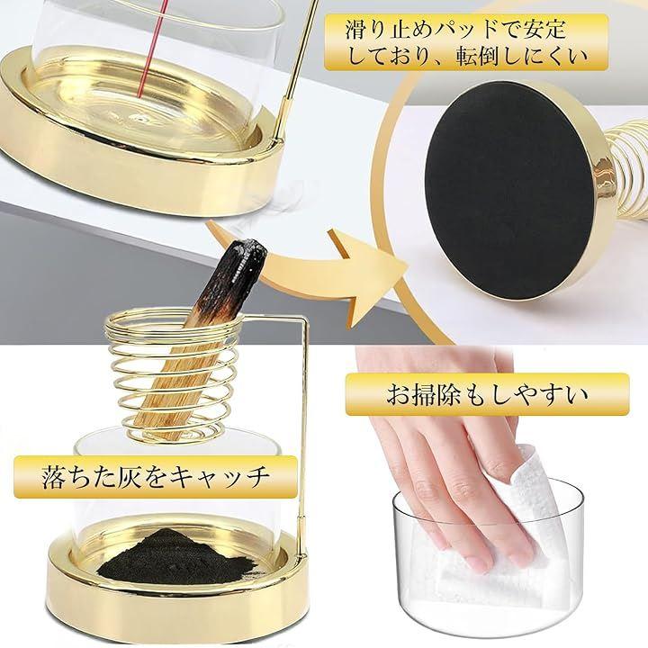 深いガラス製の受け皿で風が吹いても灰がこぼれず、スマートに香りを楽しめます。