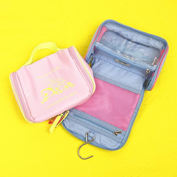 パステルカラーの本体に蛍光カラーでイラストがカワイイ♪フックでかけられるタイプなので、アメニティなどを入れて家の洗面所ではもちろん、旅行先やジムでも大活躍です!