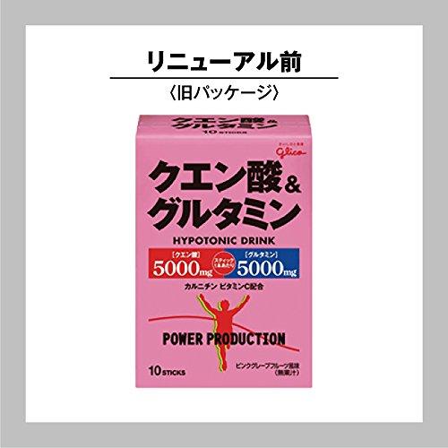 運動後に。クエン酸とグルタミンが同時に摂取できる粉末ドリンクです。グルタミンは体に一番多く存在するアミノ酸です。トレーニングや運動時など、体にストレスがかかった時は大量に消費されます。また、クエン酸はエネルギーを生み出すクエン酸回路の構成要素です。運動後や頑張った後におすすめです。クエン酸とグルタミンを高配合1本(12.4g)あたりにクエン酸5000㎎、グルタミン4000㎎配合しました。おなかに溜まりにくいハイポトニック設計運動時の水分補給において、胃に水分が溜まるとパフォーマンスに影響します。水分がすばやく吸収されるように、体液より低い浸透圧(ハイポトニック)にしています。運動中もすみやかにエネルギー、水分、ナトリウムの補給が可能です。運動中に摂りたい栄養素を配合7種のビタミンB群とビタミンCを配合しました。 内容量:124g(12.4g×10本) 商品サイズ (幅×高さ×奥行) :96×135×56(mm) 特徴:運動中・運動後の回復に。おなかに溜まりにくいハイポトニック設計。 お召し上がり方:本品1本(12.4g)を500mlの水によく溶かしてお飲みください。 原産国:日本