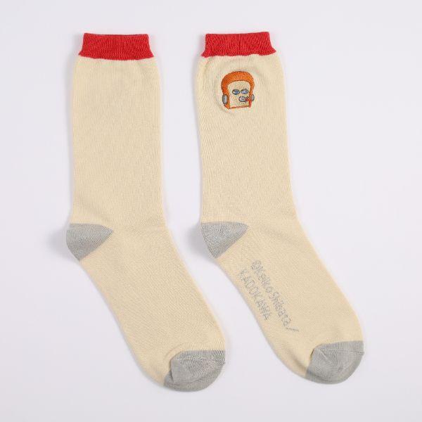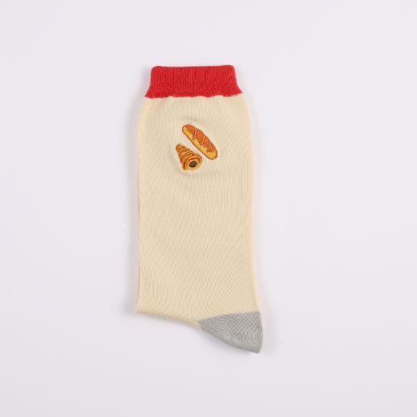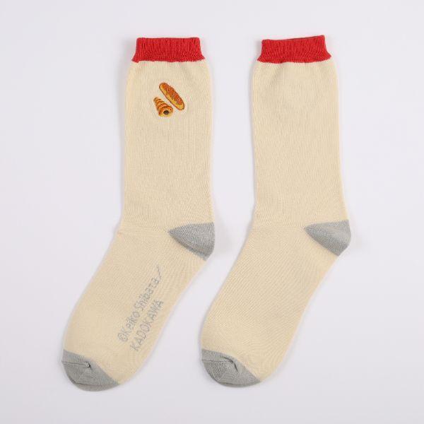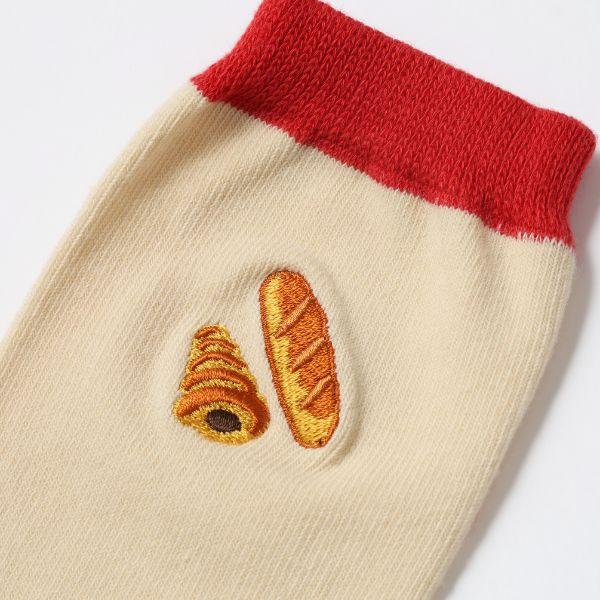 パンどろぼうの刺繍が可愛い靴下です!!履いてお出かけするだけで楽しさ100倍になっちゃう!?パンどろぼう好き必見です【サイズ:22~25cm、丈の長さ:17cm】