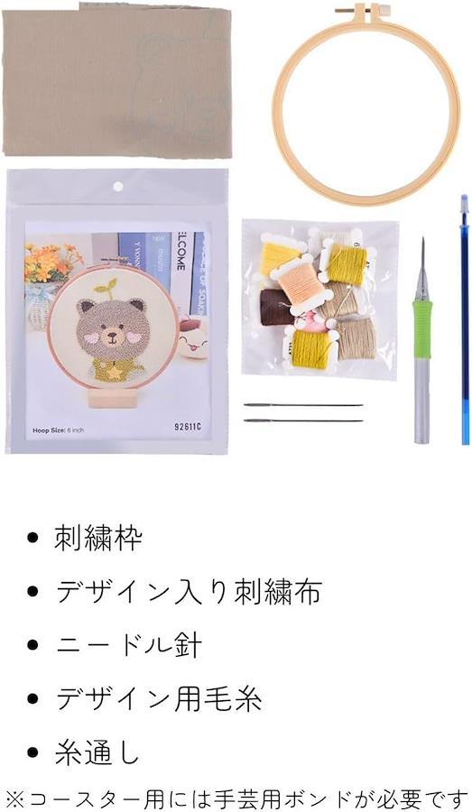 セット内容:パンチニードル針1本、下絵付きの刺繍布、毛糸、フェルト、刺繍枠、日本語説明書*手芸用ボンドは付属しておりません