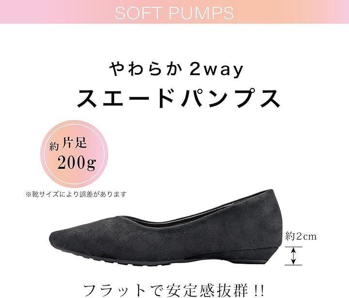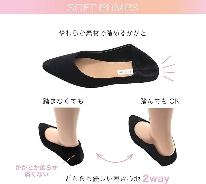 スエードパンプスはかかと部分を踏んでも履ける「2way仕様」忙しい朝や外出先でもサッと履けて快適。