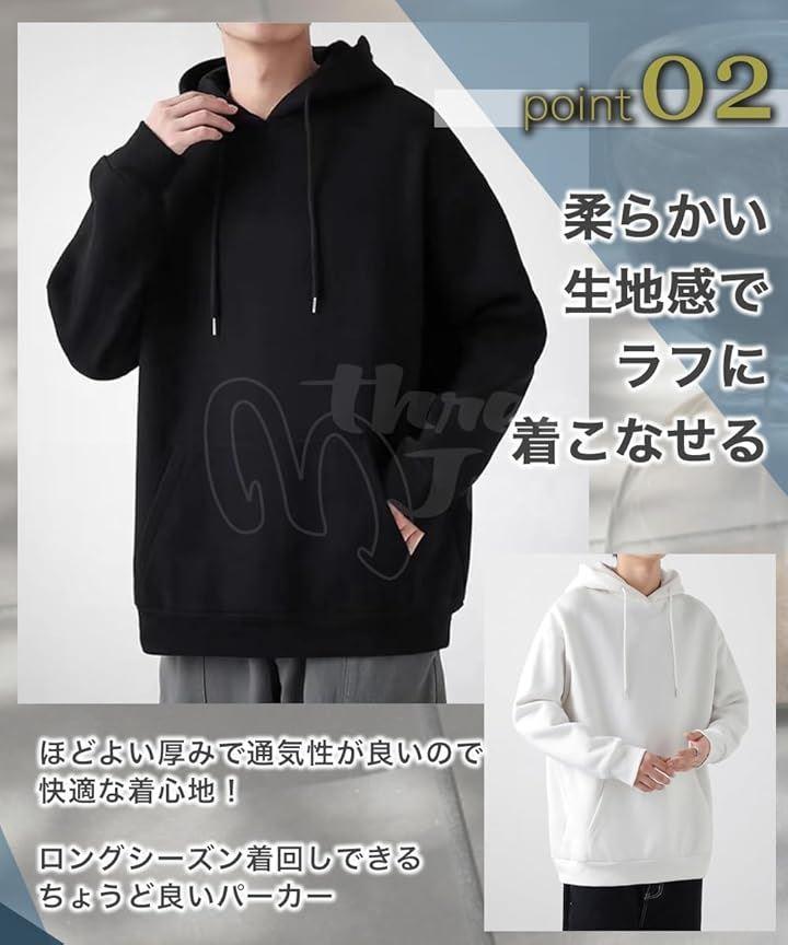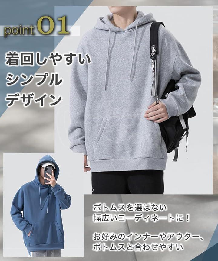 「デザイン」飽きのこないシンプルなメンズパーカーです。