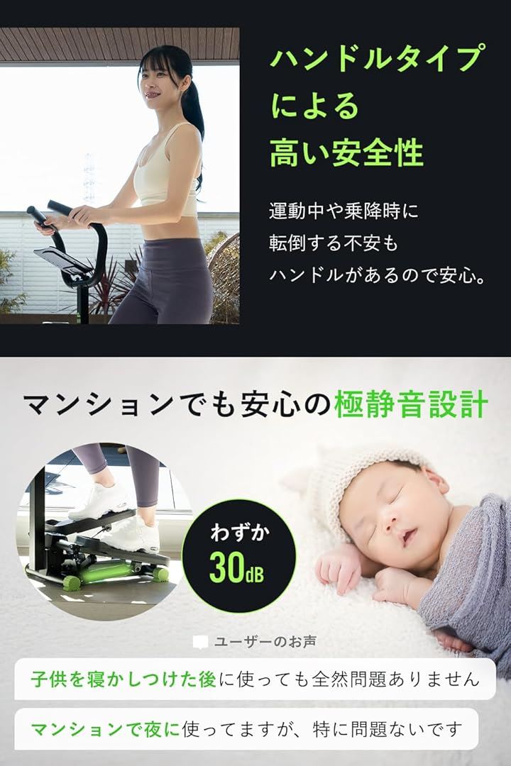 「高い安全性のハンドルタイプ」本ステッパーは安全性に配慮したハンドルタイプになっておりますので、初心者や高齢者の方でも安心して足踏み運動を行うことができます。