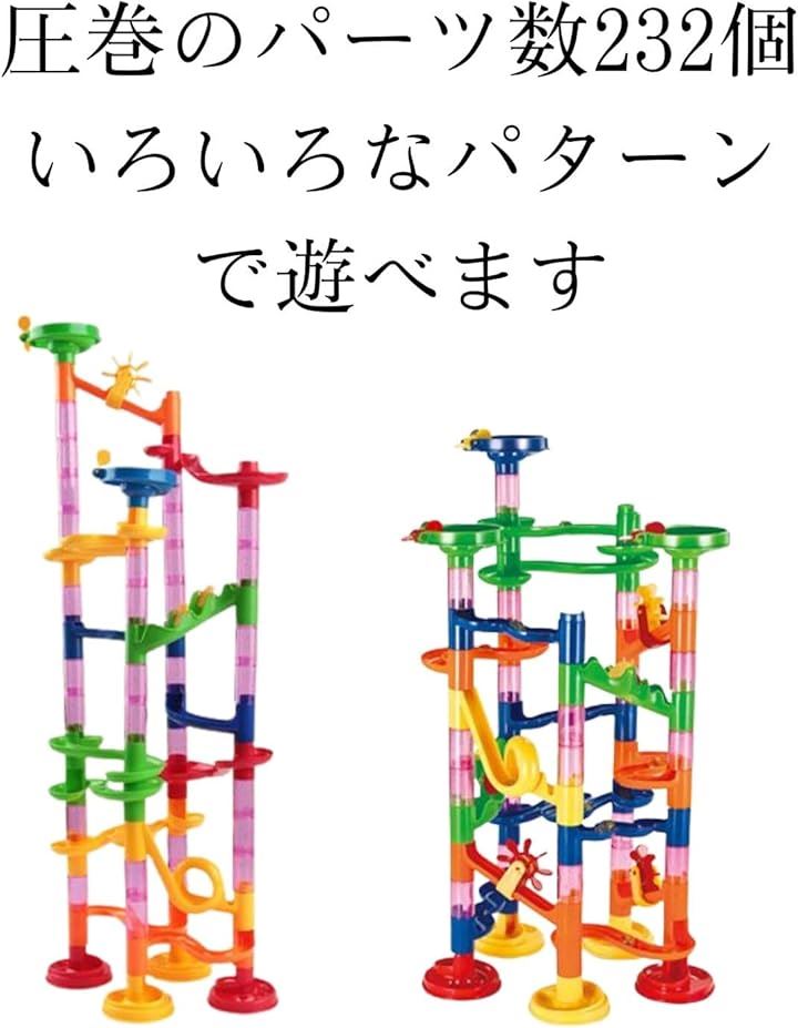 全232ピースの大ボリュームで、まるで迷宮のような立体コースを自由に構築できる知育ブロックです。