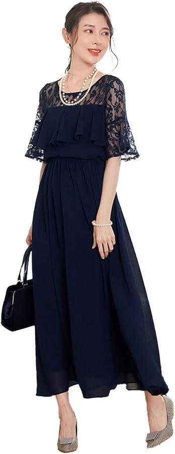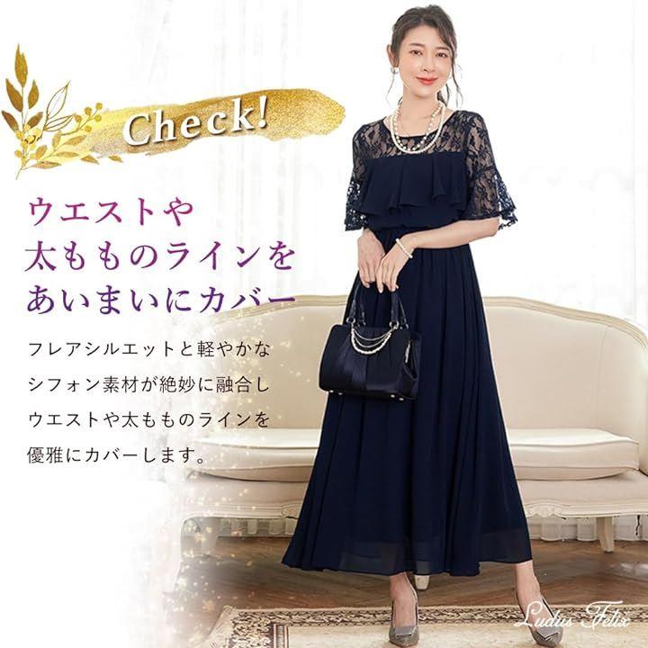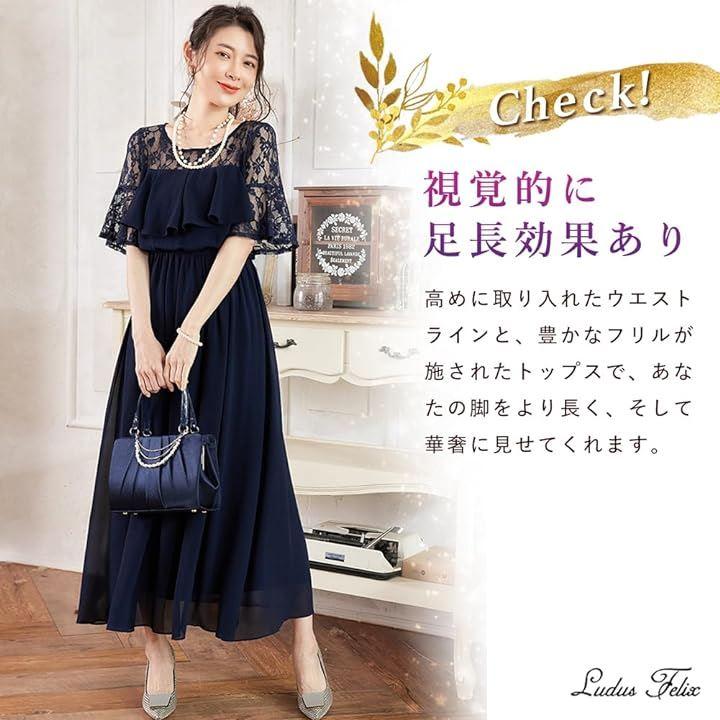レースとシフォンの繊細な素材を融合させたこのドレスは、結婚式や結婚式の二次会からパーティー、謝恩会、発表会、演奏会、特別なディナー、ビジネスイベントやセミナーのレセプション、デートまで、あらゆる場面で注目を集めること間違いなし。