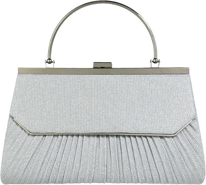 個性的なゴールドフレームに優雅なプリーツにラメ加工が美しくきらめく華やかなパーティーバッグ。
