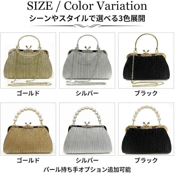 カラーはゴールド・シルバー・ブラックの3色展開で、シーンやドレスカラーに合わせて選べます。