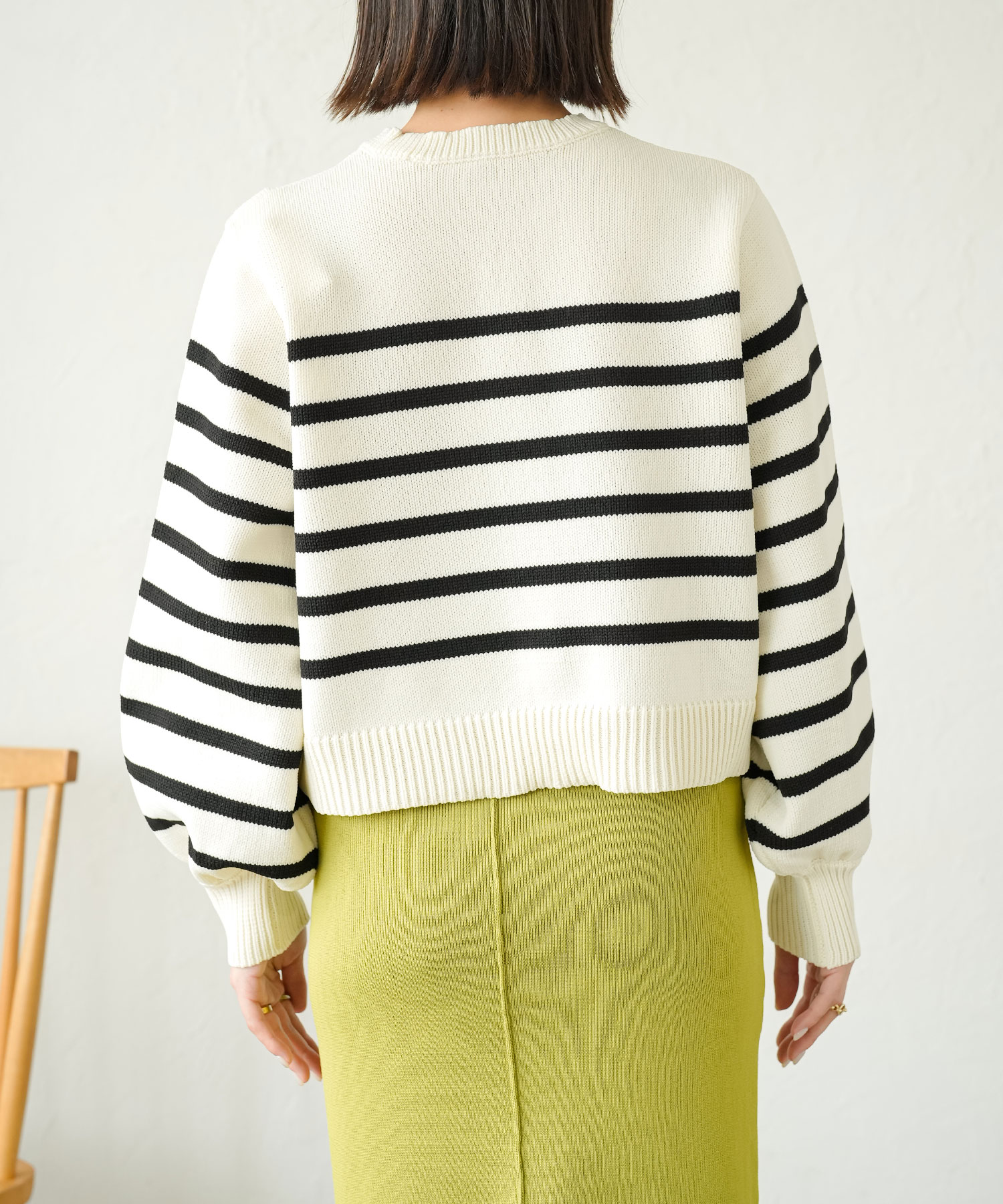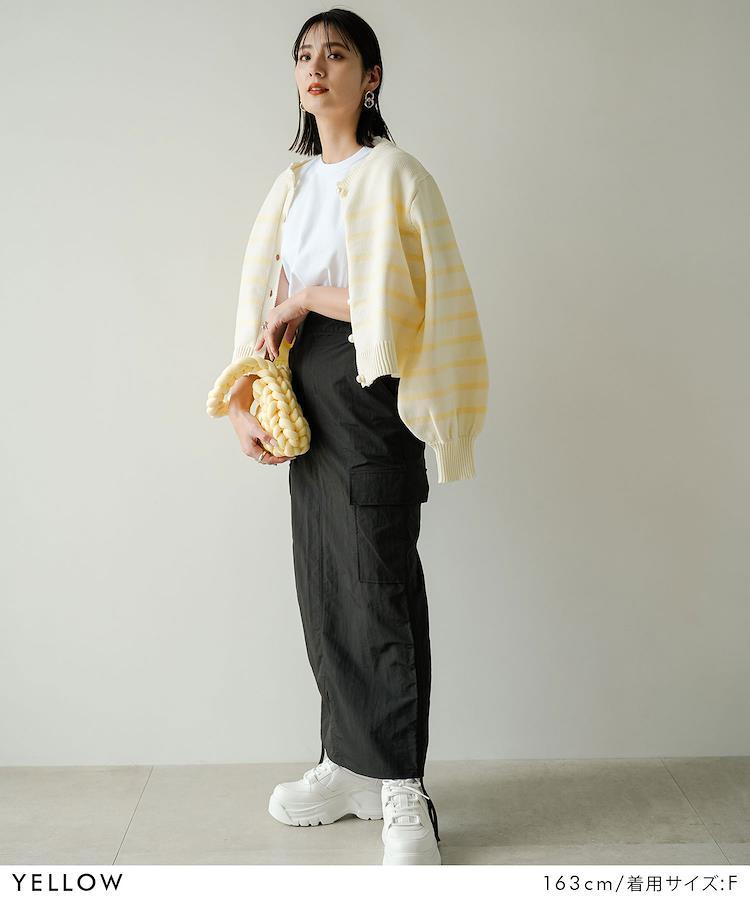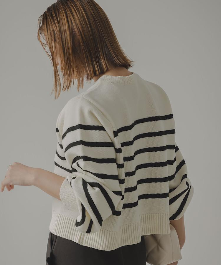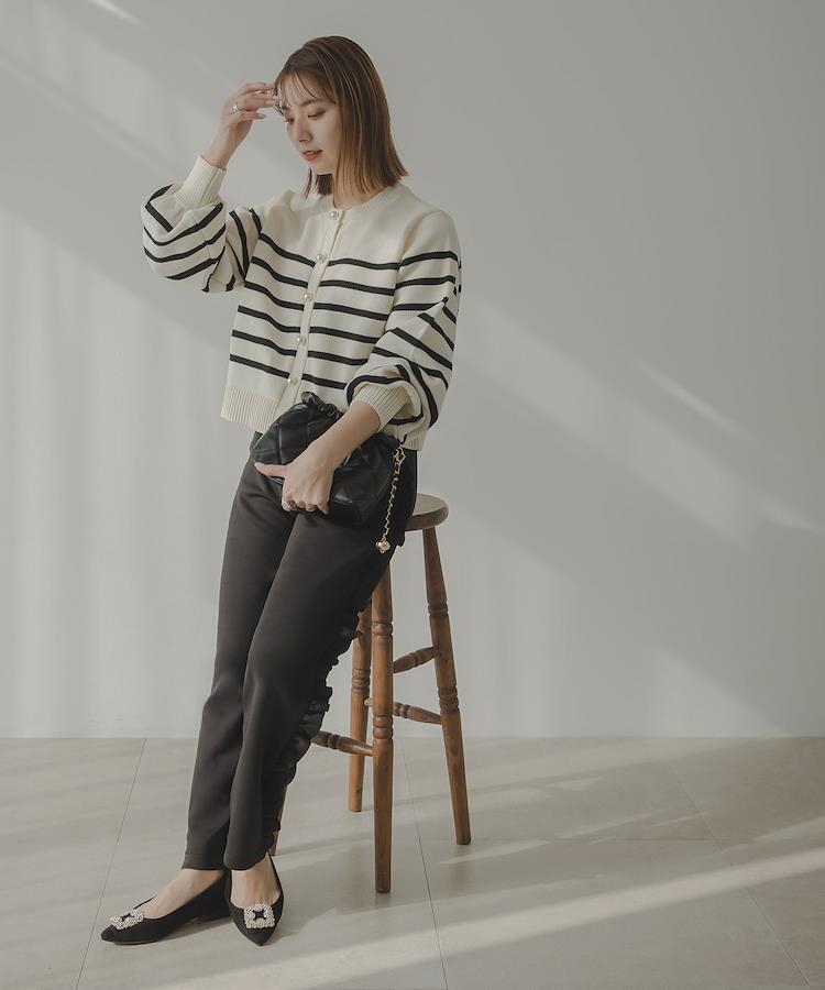 ぷっくりパールボタンが魅力的なボーダーカーディガン
