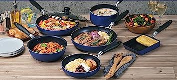 PEARL KINZOKU Frying Pan 26cm with Glass Lid Blue Diamond Coat IH Compatible Smart Choice HB-6012