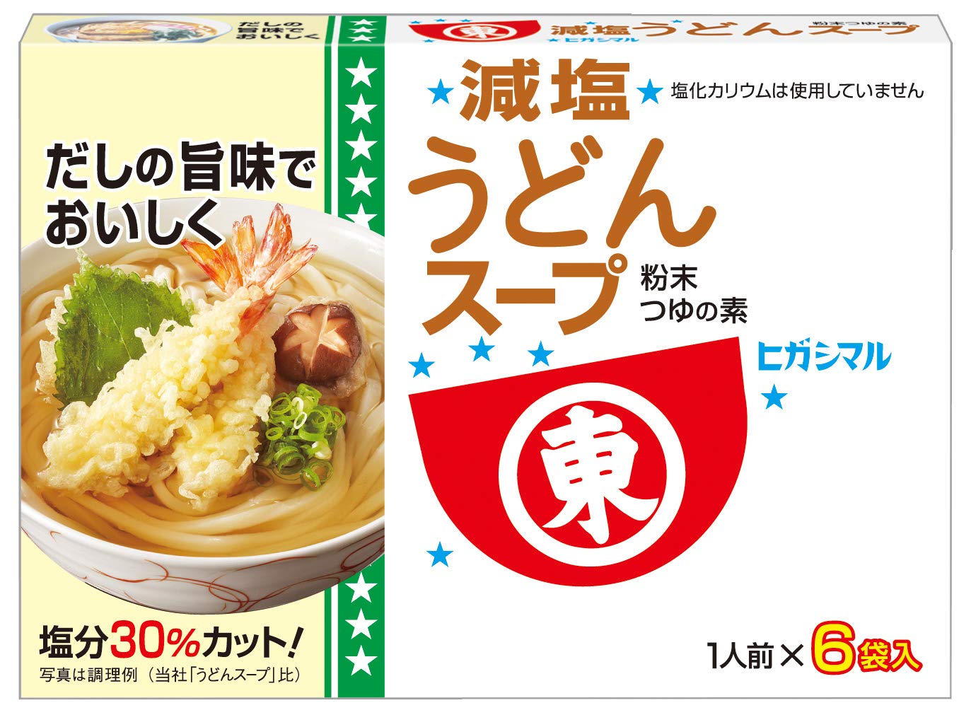 3営業日以内に発送≪新品未開封品≫本場関西の味! だしの旨みをきかせて塩分を30%カットしたうどんスープです。塩の代替品としての塩化カリウムを使用していないので、うどんつゆ本来のおいしさを味わえます。「かつお」と「昆布」のだしをたっぷりと使用(従来品比2.5倍)しているので減塩でもおいしく食べられます。香りがいきるフリーズドライ製法の当社独自の粉末だし醤油で風味豊かな広がるだし味をお楽しみいただけます。