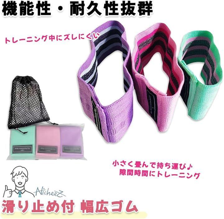 「持ち運びにも便利」このフィットネスバンドを装着し、スクワット・ヒップブリッジ・バックキックなどを行うことで、シェイプアップ・ヒップアップ効果が期待できます。