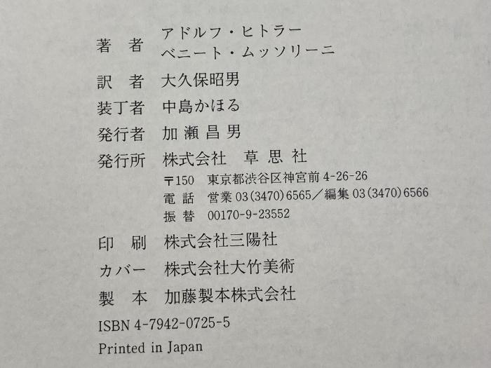 商品名:ヒトラー=ムッソリーニ秘密往復書簡 草思社 アドルフ ヒトラー