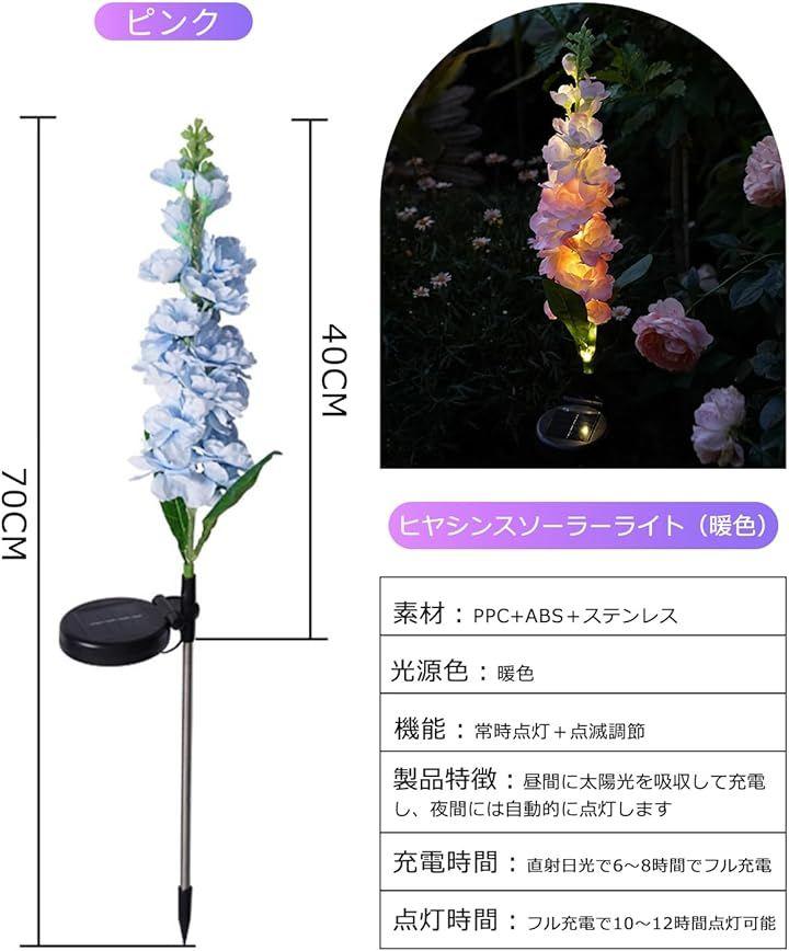 「おしゃれでかわいいなデザイン」ヒヤシンスソーラーライト(暖色)は、華やかなヒヤシンスの花を模したデザインで、あなたの庭やテラスに美しいアクセントを加えます。