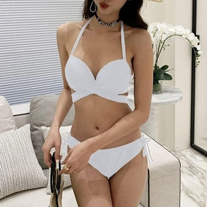 シンプルな定番ビキニの中に工夫がたっぷり詰まった大人可愛い水着です。