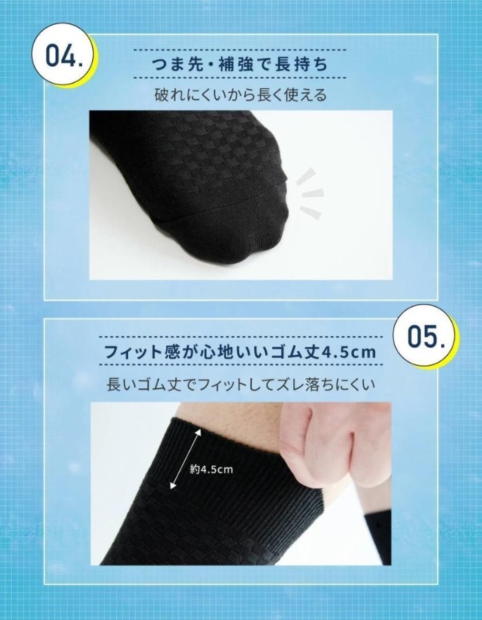 機能:抗菌防臭/つま先補強/ゴム丈長め