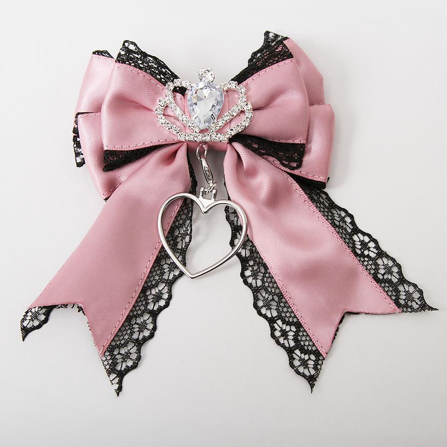 中心には大きめ王冠ビジューとサテンリボンにレースがポイントのヘアクリップ。