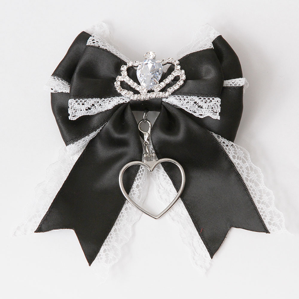 中心には大きめ王冠ビジューとサテンリボンにレースがポイントのヘアクリップ。