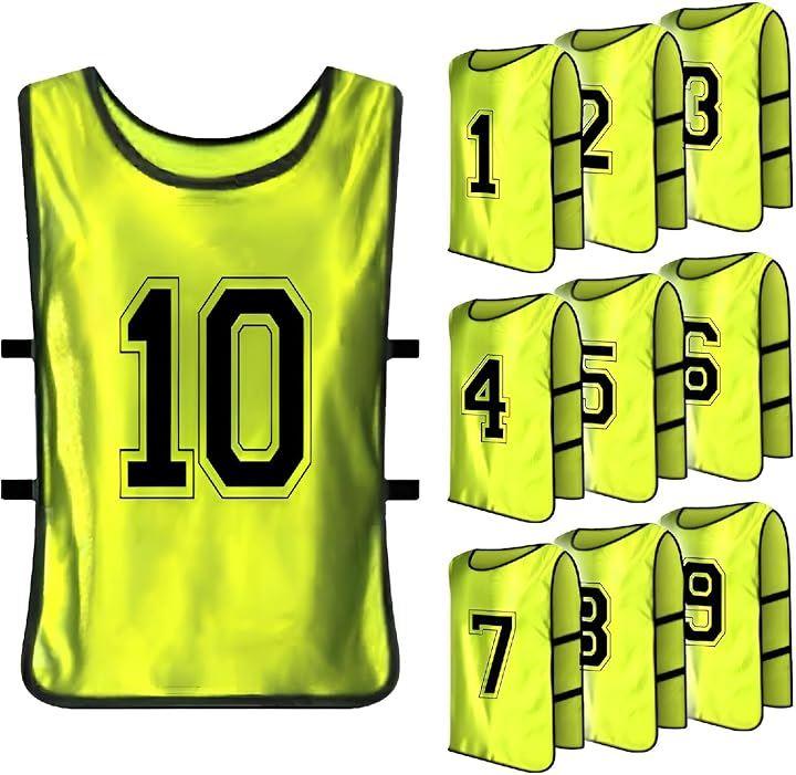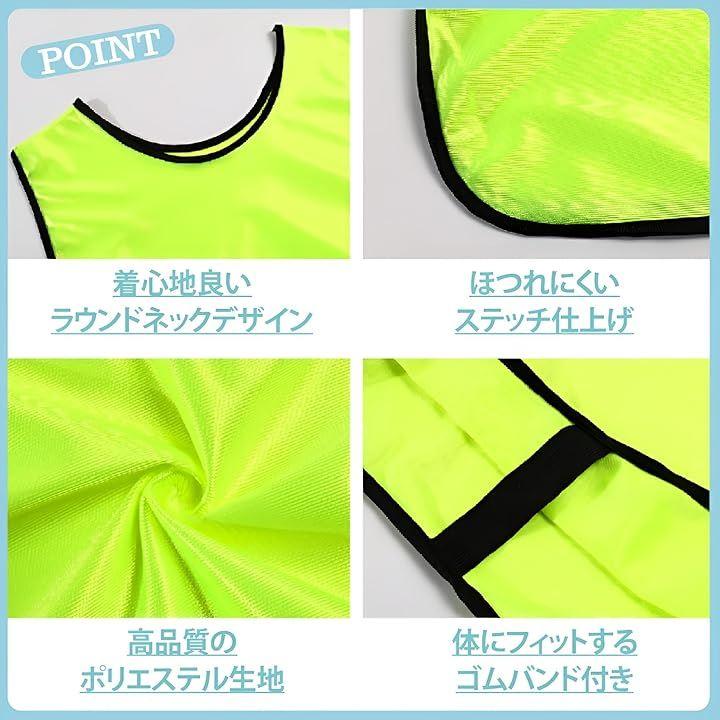 前と後に1~10の番号入り、明るいカラーの子供用ビブス10枚組です。