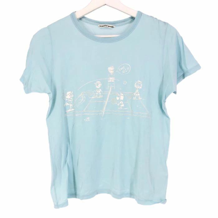 【管理番号】 014178s【ブランド名】 beautiful peopleビューティフルピープル【アイテム】 Tシャツ 半袖カットソー 綿100%【サイズ】150 レディースM相当 ユニセックス 男女兼用【サイズ】 150(レディースM相当 メンズXS相当) 平置採寸(肩幅:約34cm・身幅:約41.5cm・袖丈:約17cm・着丈:約52cm)【色・柄】 ライトブルー【素材】 コットン100%【外観ランク】Bランク【商品補足説明】 前身頃と右袖に汚れがみられます。