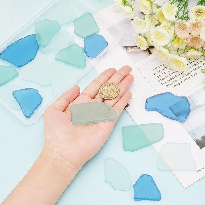 Beach glass, sea glass, decorative materials, ocean blue, deco parts, handmade materials, stained glass, photo frame, room plate, shell bottle making