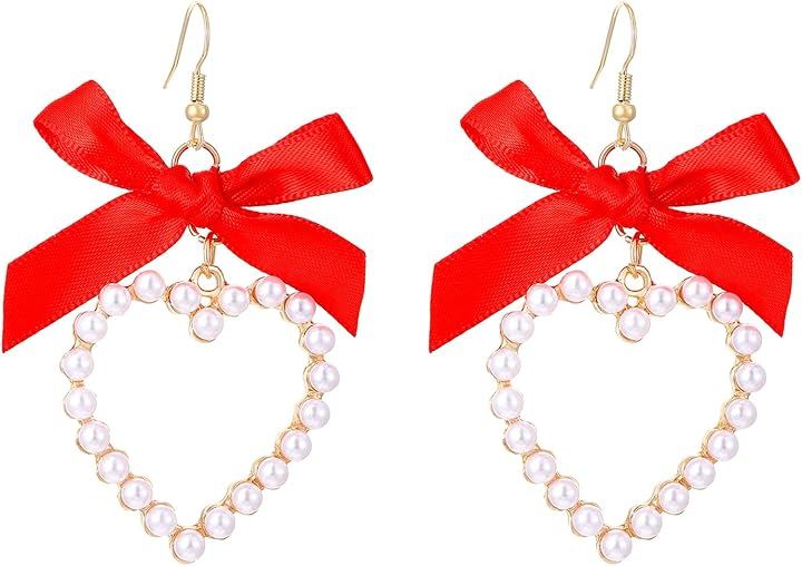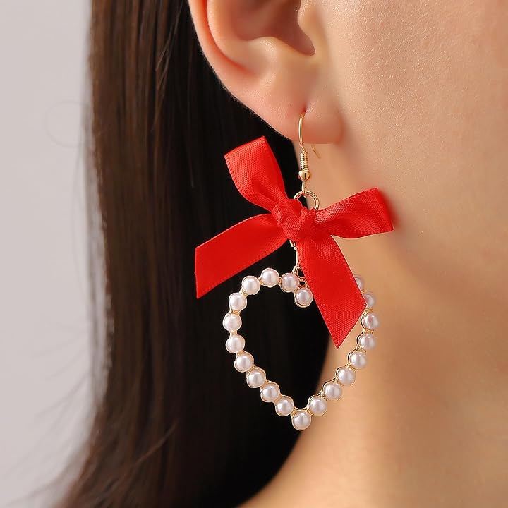 リボンモチーフが耳元を優しく彩り、動くたびに揺れるハートが女性らしさを引き立てます。