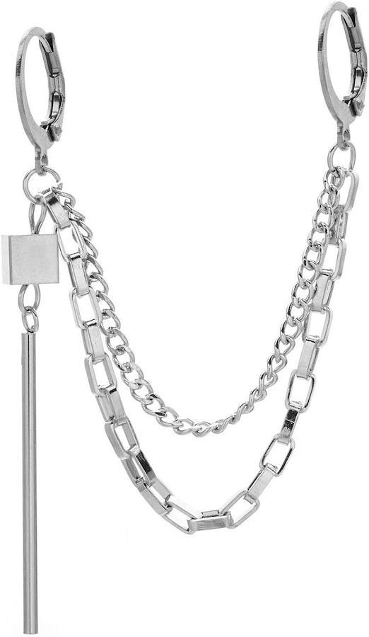 垂れ下がりのロングチェーン、スティックが存在感がありお洒落に決まります。