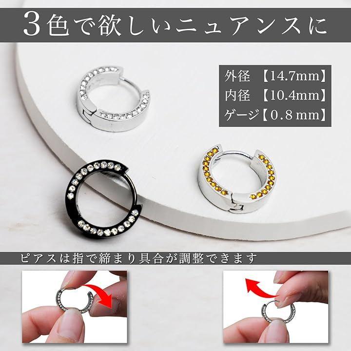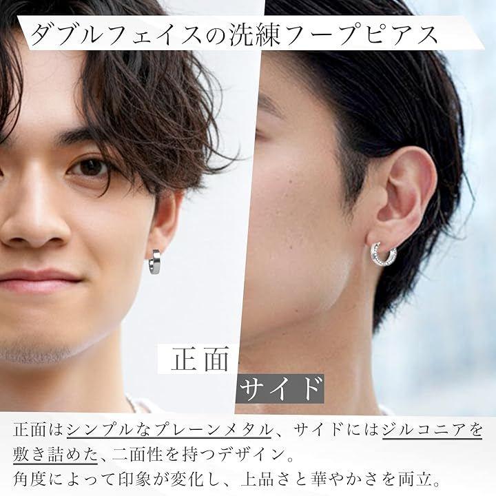 「ダブルフェイスの洗練フープピアス」 正面はシンプルなプレーンメタル、サイドにはジルコニアを敷き詰めた、二面性を持つデザイン。