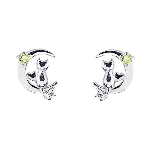 お好みの誕生石が選べる、今大人気のレディース用、ネコモチーフピアス。キュートなネコと神秘的な三日月の相性はバツグン!小ぶりではありますが、ダイヤモンドとお好みの誕生石がアクセントになり耳元を際立立てます。