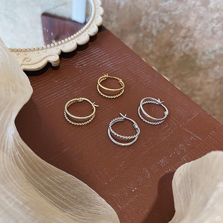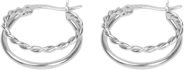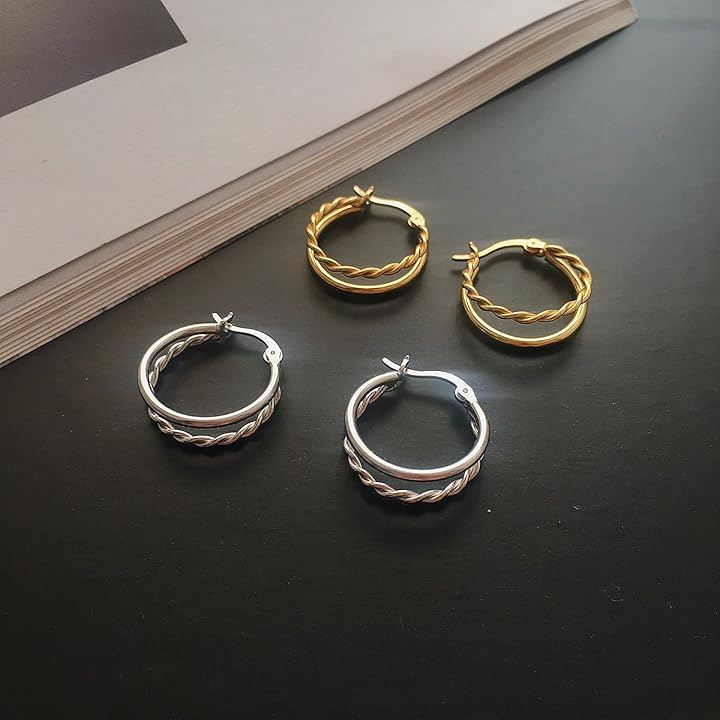 二重フープにツイストデザインを重ねた、立体感が魅力のフープピアス。