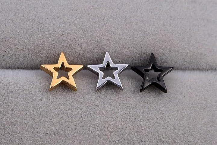 「素材」ステンレス合金 , メッキ加工(ブラック) / サイズ目安:約0.8cm x 約0.8cm (スターモチーフ)