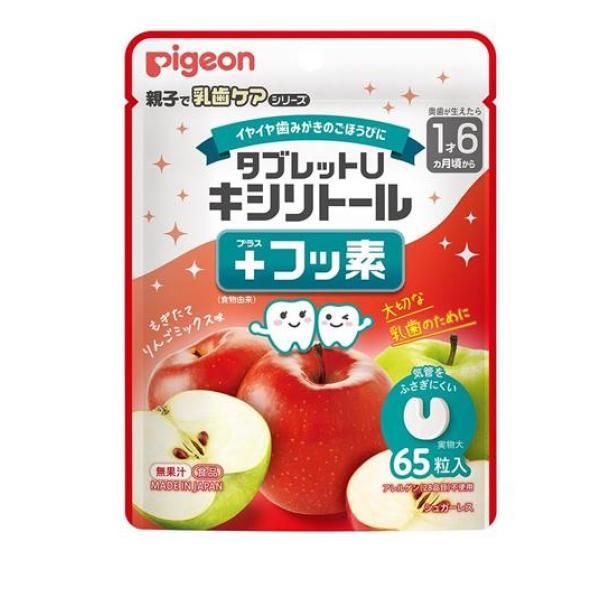 製品の特徴●ピジョン タブレットU キシリトール+(プラス)フッ素 もぎたてりんごミックス味●イヤイヤ歯みがきのごほうびに。●大切な乳歯のために。●奥歯が生えたら・1才6ヵ月頃から。●歯みがきが苦手なお子さまの「がんばる気持ち」を応援します。●キシリトールとフッ素の量はお子さま向けに調整しています。●誤って飲み込んだ場合でも、気管をふさぎにくいU字型。●お口の中で酸を作らないキシリトール(甘味料)配合。●緑茶エキスパウダー由来のフッ素を配合。●アレルゲン(28品目)不使用・シュガーレス。●無果汁。●歯みがき後に、おやすみ前に、おでかけ時に、食事・おやつの後に。●品名:キシリトール含有食品●内容量:37g(65粒)