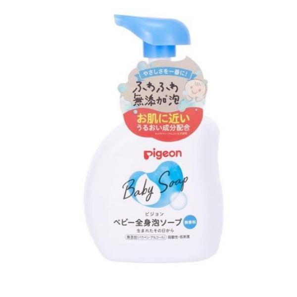 製品の特徴●Pigeon(ピジョン)ベビー全身泡ソープ 無香料●赤ちゃんのお肌へのやさしさをいちばんに考えたスキンケアシリーズ。●新生児から使える、泡で出てくるベビーソープ。●お肌に近い弱酸性で、お顔も洗ってあげられます。●未熟な赤ちゃんの肌に必要な成分「ピジョン ナチュラルモイスチャー(*1)」を配合。[*1 保湿成分:セラミドNP+イソステアリン酸フィトステリル]●皮脂を取りすぎず、うるおいを残して洗います。●赤ちゃんを抱っこしたまま、片手で出せるポンプボトル。ポンプ先はななめカットだから、泡がポンプ下に落ちて手にとりやすい。●弱酸性・無着色・無香料。パラベン・アルコール・動物由来原料フリー。●皮フ科医による皮フ刺激性テスト済み(すべての方に肌トラブルがおきないというわけではありません)●硫酸系界面活性剤を使用していません。●生まれたその日から(0ヵ月〜)●販売名:ピジョンベビー全身泡ソープV