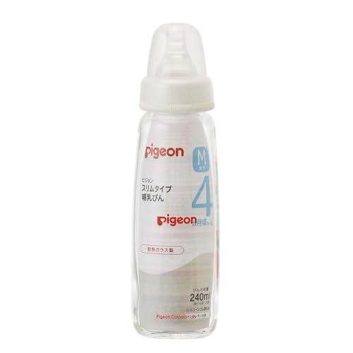 Pigeon Slim Baby Bottle, 240ml, Made of Heat-Resistant Glass, Quick-Cooling, Scratch-Resistant, and Hygienic