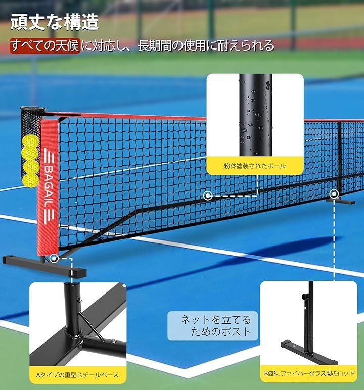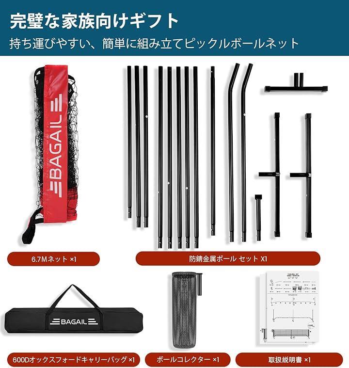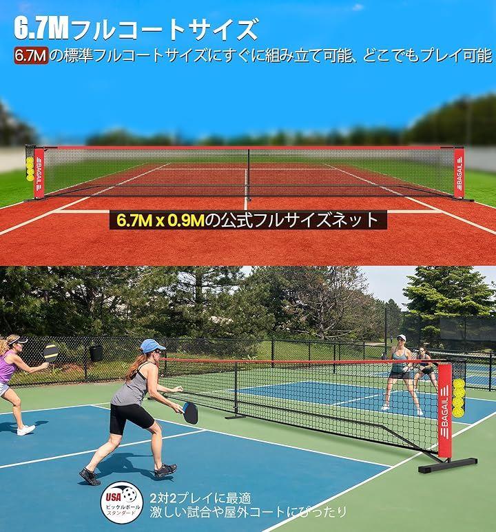 「6.7M/22フィートの規定サイズ」BAGAILの最新のポータブルピックルボールネットは、USAPAの規定に準拠したフルコートサイズ(高さ0.9M x 幅6.7M)を備えています。