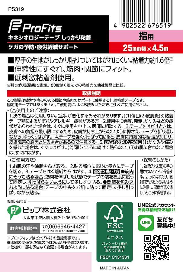 日本 【キネシオロジーテープとは】キネシオロジーテープは伸縮性のあるテープです。筋肉のサポートから関節の固定まで、目的や部位の状態に応じて多様な使い方ができるのが特徴です。 【ハードなスポーツに! 】しっかり粘着シリーズはマラソン、ランニング、バスケットボール、バレーボールなどハードなスポーツに適しています。ライトなスポーツには「プロ・フィッツ キネシオロジーテープ 快適通気」もご検討ください。 【強粘着ではがれにくい】他社製品の約1.6倍の粘着力でハードなスポーツでもはがれにくい。快適通気の約1.8倍の太さの糸を使用しており、厚手の生地でしっかりサポート。 【水に強い撥水加工】汗や水に強い撥水加工を施しており、夏場のトレーニングやシャワーでもはがれにくい。 【使用部位】25㎜幅は親指などの指、37.5㎜幅は肩・腕・手首、一番売れ筋の50㎜幅は足・膝・ふくらはぎ・足首、75㎜幅は腰・膝・太ももに適しています。テープを切る際はハサミをご使用ください。
