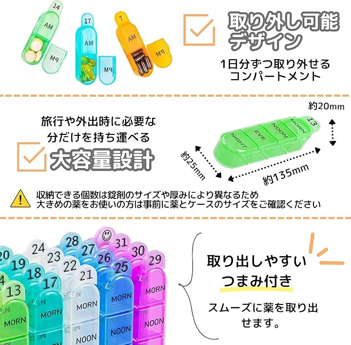 x 本体サイズではなく、1日分ケース寸法と1マス内寸をご確認の上お選びください。