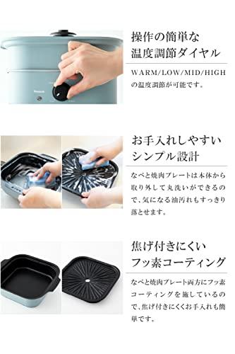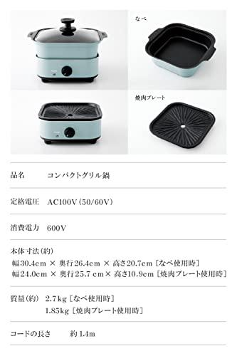 通常1-5営業日で発送:省スペース設計で、スタイリッシュ。毎日使いたくなるコンパクトグリル鍋。お鍋も、焼肉も。これ1台で、おいしさいろいろ。鍋プレートと焼肉プレートの2枚がセットになっているので、1台で2通りの楽しみ方ができレパートリーが広がります。 コンパクト設計なので食卓に置きやすく上手にテーブルを使えます。専用の鍋を使ったオリジナルレシピブック付きで、定番の鍋料理はもちろん、しゃぶしゃぶ、おでん、豆乳鍋、煮込みハンバーグ、チキンのクリーム煮やフレンチトーストなど6種類のレシピを掲載しております。