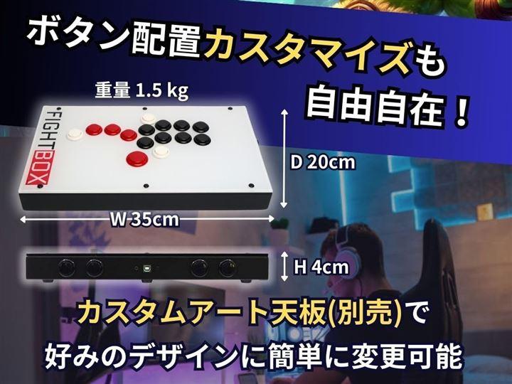 FightBox F10-PS5-V2 は、従来のアーケードスティックに配置されているジョイスティックの代わりに、コントローラーの左側に 3 つの三和電子製OBSF-24 ボタンと 1 つの 三和電子製OBSF-30 ボタンがあり、コントローラーの右側のアクション ボタンとして 8 つの 三和電子製OBSF-24 ボタンを配置しています。