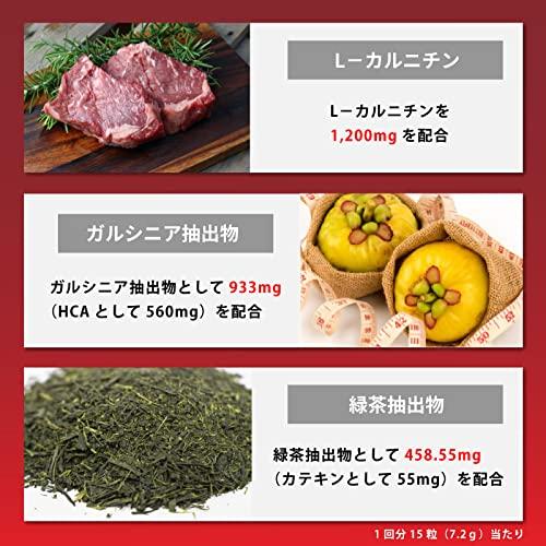 ?実践現場で繰り返しテストされた確かな配合。ダイエッターをサポートするオールインワンサプリメントです。主要成分として、L-カルニチン1,200mg 、ガルシニア抽出物933mg(HCAとして560mg)、緑茶抽出物458.55mg(カテキンとして55mg) 、コエンザイムQ10包接体250mg(CoQ10として50mg) 、唐辛子粉末200mg 、カフェイン100mgを配合しています。 ?原材料名:コーンスターチ(国内製造)、L-カルニチンL-酒石酸塩、ガルシニア抽出物、緑茶抽出物、唐辛子粉末、コエンザイムQ10/ゼラチン、ショ糖脂肪酸エステル、カフェイン ?栄養成分表示/製品15粒(7.2g)中(推定値)エネルギー:26kcal、たんぱく質:2.0g、脂質:0.2g、炭水化物:4.1g、食塩相当量:0.01g ?1回7~15粒を目安にお水などと一緒に噛まずにお召上がりください。 ?●沢山の水分を摂取してください。●体調等に合わせて摂取量を調整してください。●カフェイン・カプサイシンが含まれます。過剰摂取には十分にご注意いただきご使用ください。