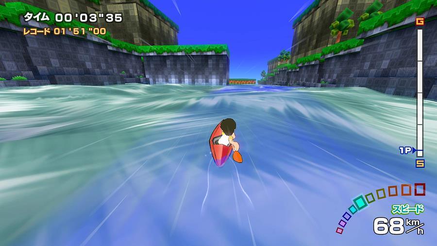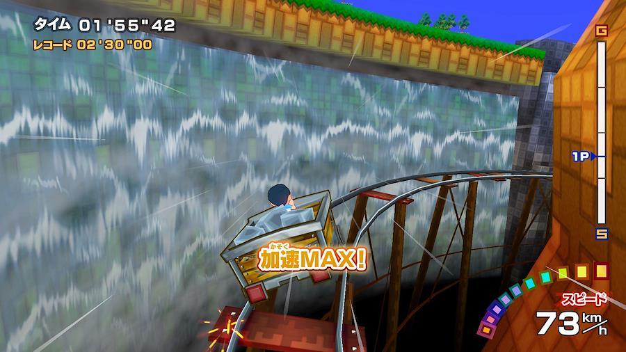 難しい操作は不要。“レッグバンド"でJoy-Conを脚に装着! 走ったりジャンプしたり、全身をめいっぱい動かして遊べる15種類のアトラクション! -トロッコに乗って全身でバランスをとりながらゴールを目指せ! 「トロッコアドベンチャー」-Joy-Conがオールに! カヌーをこいで大きな川を下っていこう! 「カヌー川下り」-転がってくる丸太をタイミングよくジャンプしてかわすサバイバルゲーム! 「丸太かわし」