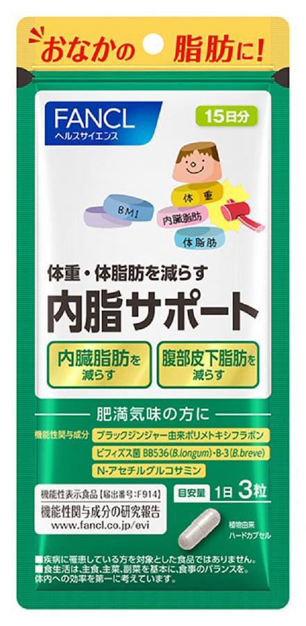 お腹の脂肪、体重・体脂肪を減らすとともに、脂肪を消費しやすくする肥満対策サプリメント。・写真はイメージです。実際にお届けする商品と異なる場合がございます。 ・予告なく商品のパッケージ、デザイン、容量、原材料が変更になる場合や店舗によって異なる場合がございます。 ご購入後、商品パッケージの記載内容をご確認ください。 常温 原材料: 【機能性関与成分/1日3粒当たり】 ブラックジンジャー由来ポリメトキシフラボン:12㎎、 ビフィズス菌BB536(B.longum):100億個、 ビフィズス菌B-3(B.breve) :50億個、N-アセチルグルコサミン:238㎎ ブラント名: ファンケル メーカー名: ファンケル