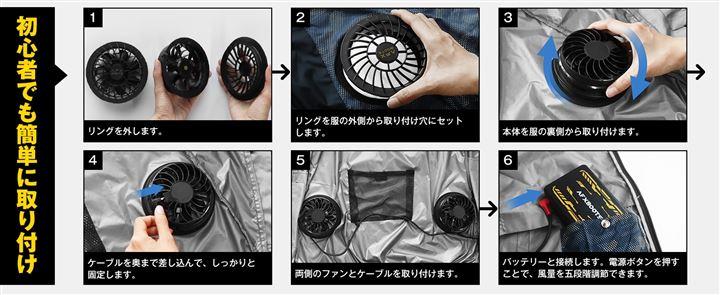 「192L/S風力・6段階風速調整」42Vで最大192L/Sの風量を実現、瞬時に冷却。42Vから16Vまで、6段階風量切替もご用意。