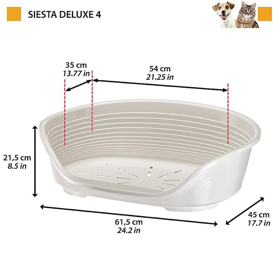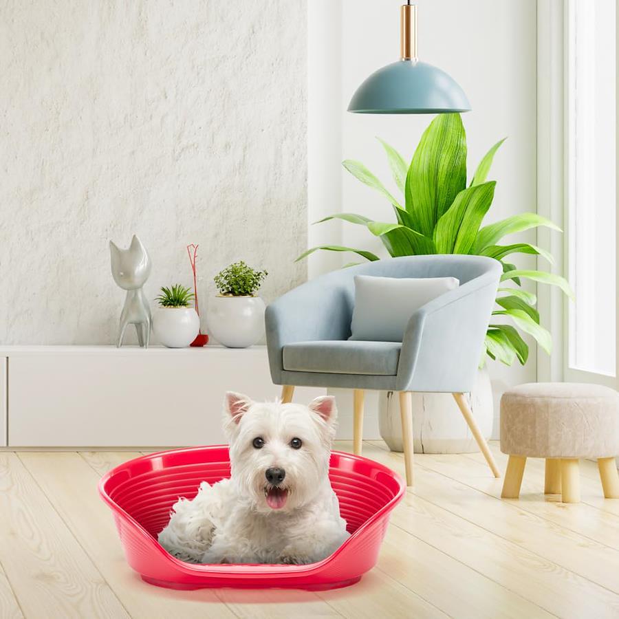 イタリアferplast社製。滑り止め付きプラスチック製のベッド。 ワンちゃん、猫ちゃんにお使い頂けます。 ・プラスチック製なので眠るときに寄りかかる事ができ、丸みを帯びた形なので、愛犬、愛猫がリラックスできます。 ・快適に過ごせるように底部に穴を開け、通気性が良くムレにくい設計。 ・滑り止めが付いているので、フローリングでも安心してお使い頂けます。 ・お手入れ簡単で、衛生的。汚れてもすぐ洗うことができ、ふき取るだけて乾きます。 ■サイズ(cm):61.5×45×H21.5 ■シエスタ SIESTA