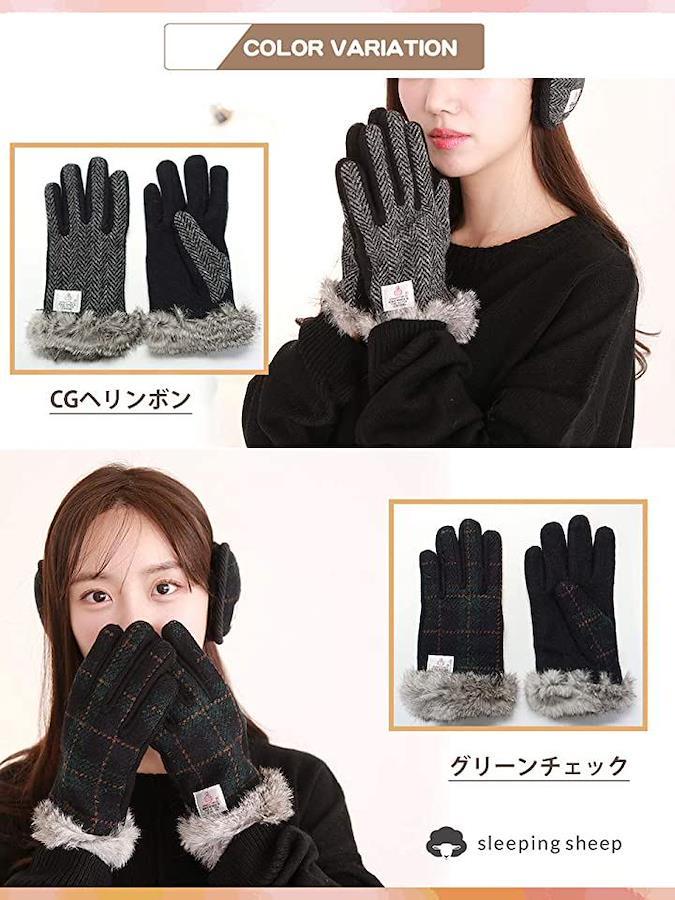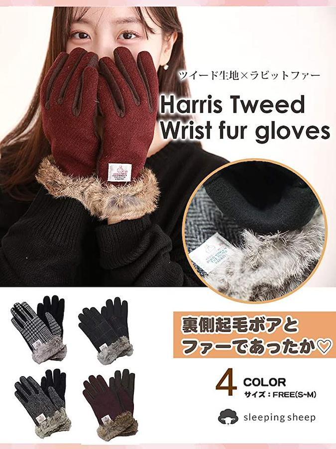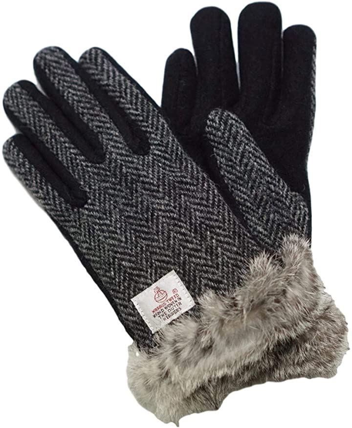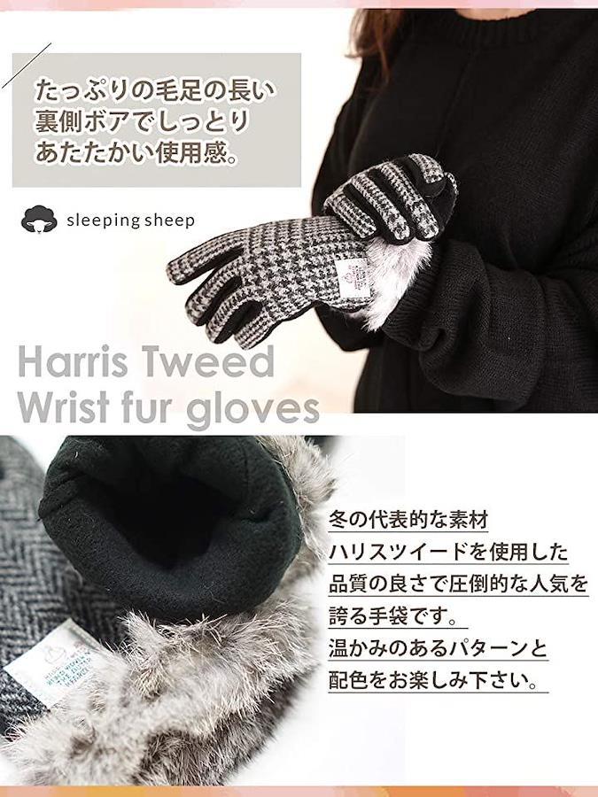 ハリスツイードHarrisTweedレディースファー付き手袋ケース付き