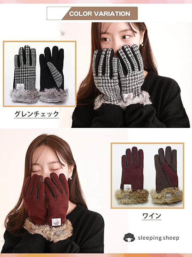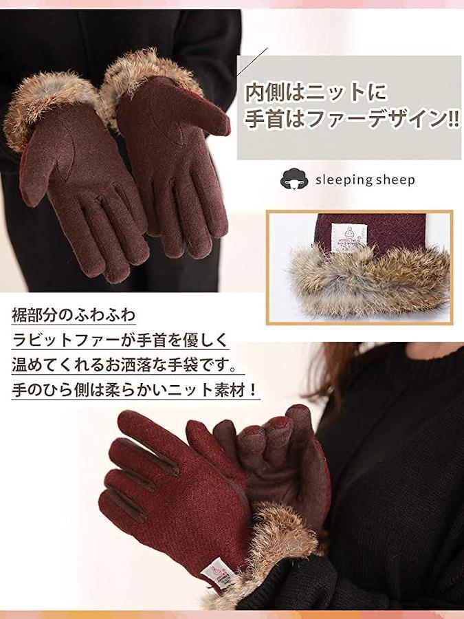 裾部分のふわふわラビットファーが手首を優しく温めてくれるお洒落な手袋です。