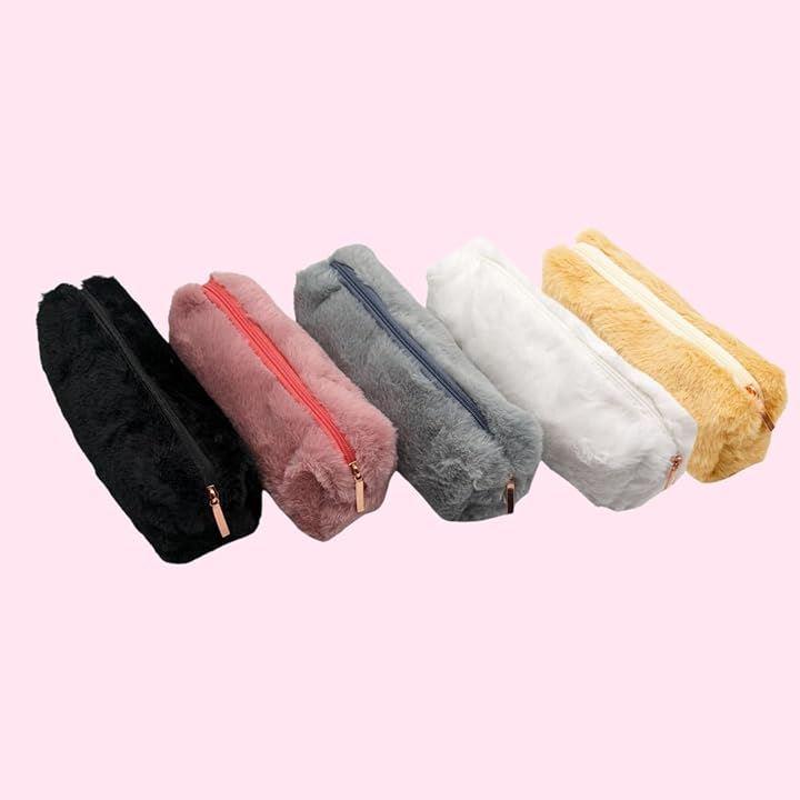 ・つい触りたくなる、モコモコふわふわ柔らか、フェイクファーを使用したシンプルカラーのペンケースです。