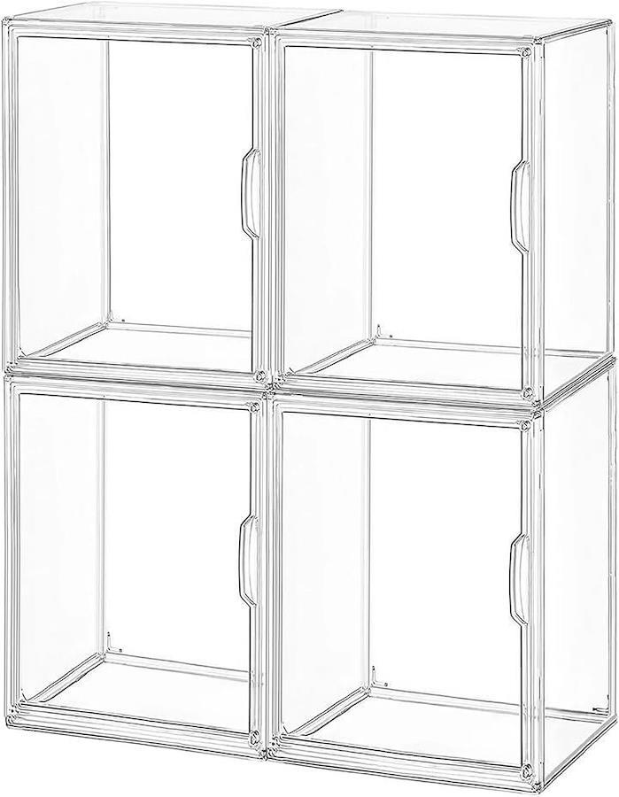 サイズ:36(幅)x22(奥行き)x27(高さ)cm、セット:4個入り、素材:高透明PET材質、場所をとらず小型/大型のフィギュア、模型を展示するのにちょうどよいサイズ。