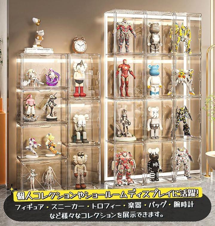 「多機能収納」透明のデザインで、ケースだけではなく、人気のキャラクターモデル、トロフィー、お土産、人形、かばん、本、おもちゃ、靴、手工芸品展示会、家の装飾、オフィスの装飾などが収納できます。